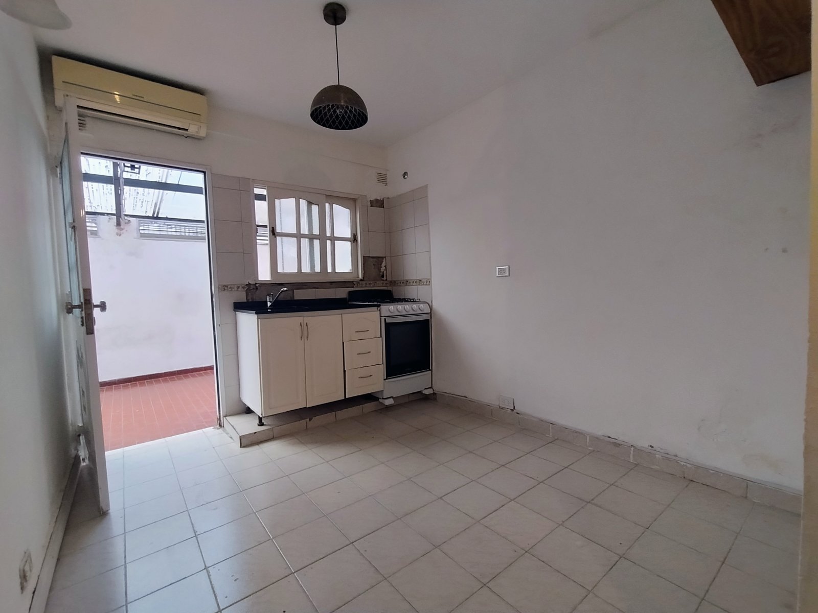 Esta en planta baja y al ingresar encontramos la cocina comedor con bajo mesada y horno a gas, dos dormitorios con excelente ventilacion y uno de ellos con placard embutido, un baño y el patio privado que es muy espacioso por el cual tiene ingreso a la unidad.
